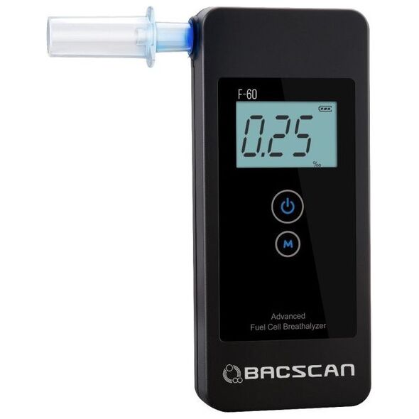 Το αλκοτέστ βασίζεται σε έναν νέο τύπο ηλεκτροχημικού αισθητήρα πλατίνας που αντιδρά μόνο στην αιθυλική αλκοόλη, χάρη στον οποίο προσδιορίζει με ακρίβεια την περιεκτικότητα σε αλκοόλ στο ληφθέν δείγμα μέτρησης. Το BACscan F-60 έχει ευρύ φάσμα μετρήσεων από 0,00 έως 5,00. Τα αποτελέσματα των μετρήσεων εμφανίζονται με ανάλυση έως δύο δεκαδικά ψηφία. Η φωτιζόμενη βάση επιστόμιου και η φωτεινή, ευανάγνωστη οθόνη LCD διευκολύνουν την εκτέλεση μετρήσεων σε χαμηλή ένταση φωτός Η μονάδα ελέγχου θερμοκρασίας εμποδίζει την εκτέλεση της μέτρησης κατά την υπέρβαση του εύρους θερμοκρασίας λειτουργίας του ελεγκτή, γεγονός που βοηθά στην αποφυγή πιθανής βλάβης. Η συσκευή διαθέτει έναν μετρητή για τον αριθμό των μετρήσεων που πραγματοποιήθηκαν, μια ενσωματωμένη μνήμη των τελευταίων 10 αποτελεσμάτων και μια λειτουργία που σας υπενθυμίζει να πραγματοποιήσετε βαθμονόμηση Το BACscan F-60 τροφοδοτείται από δύο αλκαλικές μπαταρίες 1,5 V AAA. Τα τελευταία ηλεκτρονικά εξαρτήματα έχουν μειώσει την κατανάλωση ενέργειας, επιτρέποντας στο αλκοτέστ να λειτουργεί περισσότερο με ένα σετ μπαταριών.
