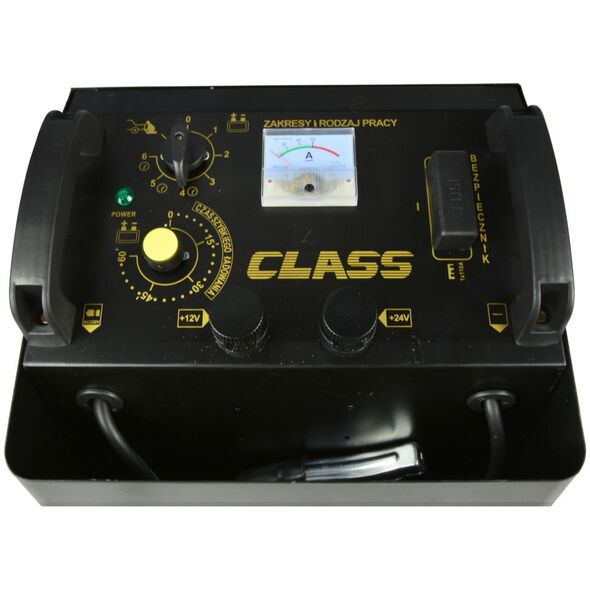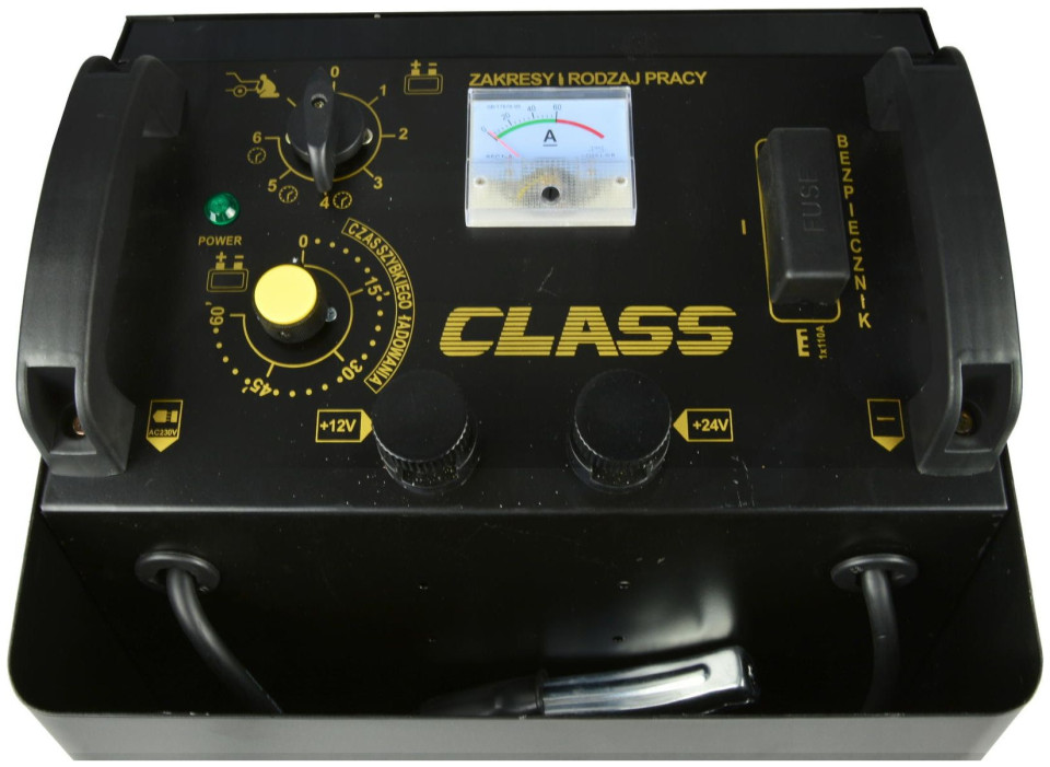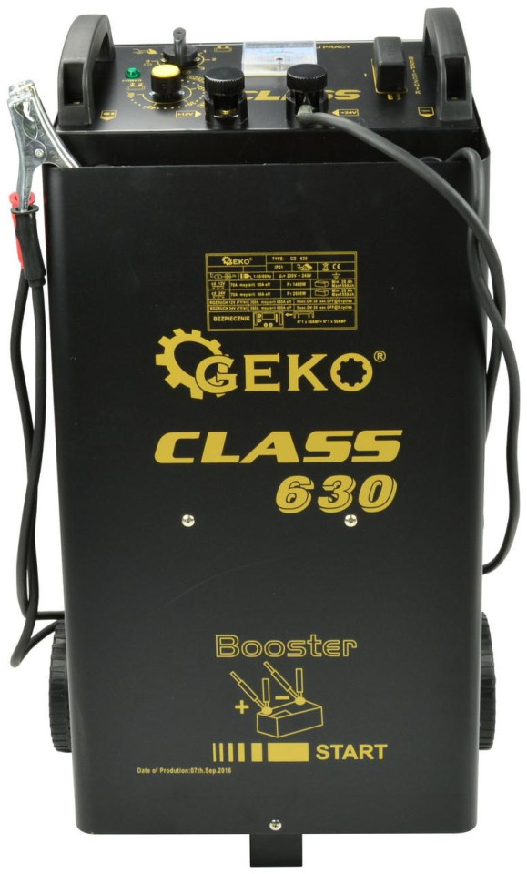 Συσκευή εκκίνησης και ανορθωτή LCD Class 630 Η συσκευή εκκίνησης της σειράς Class 630 έχει σχεδιαστεί για να υποστηρίζει την εκκίνηση και τη φόρτιση μπαταριών μολύβδου-οξέος 12V ή 24V, που χρησιμοποιούνται, μεταξύ άλλων, σε φορτηγά και μηχανήματα κατασκευής, καθώς και για εκκίνηση κινητήρων καύσης σε περίπτωση εντελώς αποφορτισμένης μπαταρίας ή πολύ χαμηλών θερμοκρασιών περιβάλλοντος Ο ανορθωτής είναι εξοπλισμένος με θερμικό διακόπτη που απενεργοποιεί το σύστημα όταν ο μετασχηματιστής υπερθερμαίνεται. Η Class 630 διαθέτει χρονοδιακόπτη που απενεργοποιεί αυτόματα τη συσκευή μετά από καθορισμένο χρόνο, αποτρέποντας έτσι την υπερφόρτιση της μπαταρίας κατά τη γρήγορη φόρτιση. Ιδανικό για υποστήριξη της εκκίνησης οχημάτων με κινητήρες βενζίνης και ντίζελ, όπως φορτηγά, φορτηγά παράδοσης, γεωργικά μηχανήματα κ.λπ. Χαρακτηριστικά προϊόντος: επιλογή γρήγορης φόρτισης, καθαρή οθόνη LCD, χρονοδιακόπτης για την αποφυγή υπερφόρτισης της μπαταρίας, επιτρέπει την εκκίνηση κινητήρων με πλήρως αποφορτισμένη μπαταρία , φορτίζει μπαταρίες χωρητικότητας 20 και άνω έως 1550 Ah Τάση φόρτισης 12V / 24V Τεχνικές προδιαγραφές: Τάση τροφοδοσίας: 230V, 50Hz Τάση φόρτισης: 12V / 24V Μέγιστο ρεύμα φόρτισης: 12V-60A; 24V-90A Ρεύμα εκκίνησης: 12V-360A; 24-550A Ασφάλεια: 3x50A Χωρητικότητα υποστηριζόμενων μπαταριών: 20-1550Ah Μήκος καλωδίων ανορθωτή: 240 cm Μήκος καλωδίου τροφοδοσίας: 240 cm{Weight [kg]} Δεν υπάρχουν διαθέσιμα δεδομένα. {Weight [kg]} Δεν υπάρχουν διαθέσιμα δεδομένα. {Weight [kg]} Δεν υπάρχουν διαθέσιμα δεδομένα. {Weight [kg]} Δεν υπάρχουν διαθέσιμα δεδομένα. {Weight [kg]} Δεν υπάρχουν διαθέσιμα δεδομένα