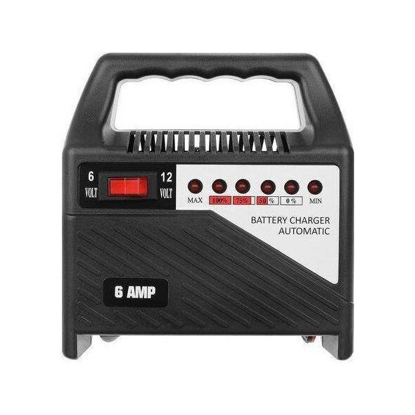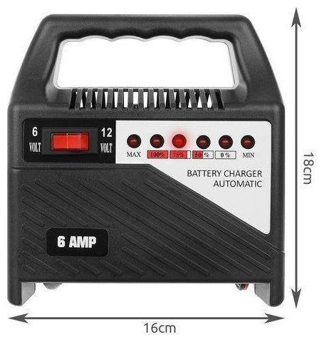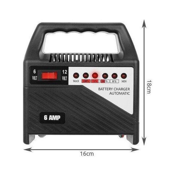 6V και 12V – η συσκευή διαθέτει διακόπτη χάρη στον οποίο, πριν φορτίσουμε την μπαταρία, μπορούμε να επιλέξουμε 6V ή 12V ανάλογα με τις ανάγκες μας. Μπορεί εύκολα να φορτίσει δημοφιλείς μπαταρίες αυτοκινήτων, μπαταρίες μοτοσικλετών και πολλές άλλες. Είναι εξαιρετικά αποδοτικό, αποτελεσματικό και καταναλώνει λίγη ηλεκτρική ενέργεια.