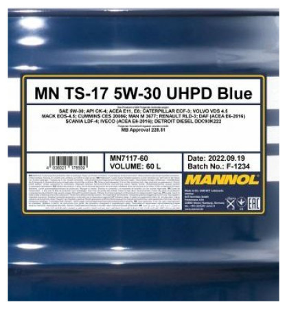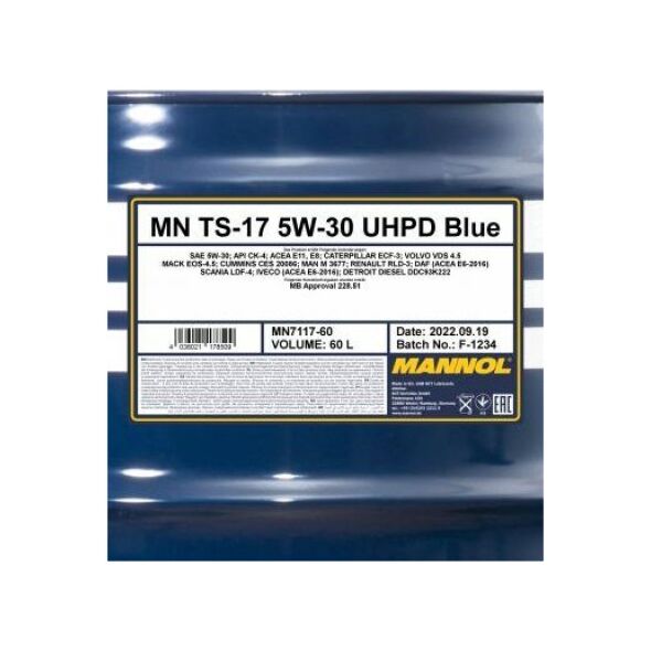 Mannol Λάδι TS-17 UHPD Blue 5W/30 συνθετικό για κινητήρες 60 L
