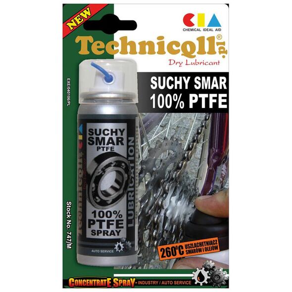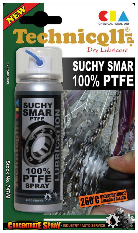 Το ξηρό γράσο PTFE είναι ένα καθαρό, υψηλής ποιότητας παρασκεύασμα που περιέχει μικρονισμένη σκόνη τεφλόν 100%. Αυτό το προϊόν δεν περιέχει λιπαρές ουσίες που προσελκύουν σκόνη, βρωμιά και άμμο. Είναι ένα υπερσύγχρονο και εξαιρετικό λιπαντικό που προορίζεται για όλους τους τύπους κίνησης αλυσίδας, γραναζιών και ιμάντων, ιδιαίτερα αναντικατάστατο σε μηχανισμούς που λειτουργούν σε επαφή με ατμοσφαιρικούς ρύπους.