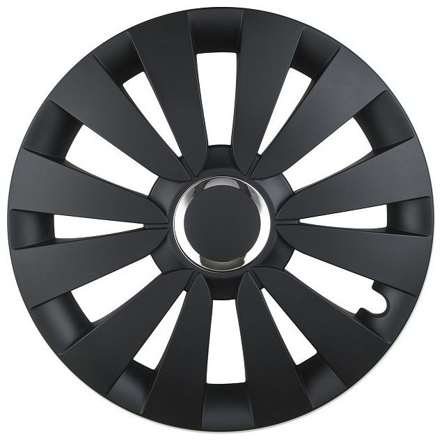 Kołpaki pasują do większości modeli samochodów wyposażonych w stalowe felgi. Dzięki możliwości regulacji obręczy można idealnie dopasować kołpak do felgi. Nie nadają się jedynie do felg wypukłych ZALETY: WYSOKA JAKOŚĆ zastosowanego tworzywa ABS WYTRZYMAŁOŚĆ ? odporne na uderzenia i zmienne warunki atmosferyczne BEZPIECZEŃSTWO ? zatrzaski z tworzywa sztucznego nie powodują uszkodzenia felg ŁATWOŚĆ MONTAŻU ? bez użycia dodatkowych narzędzi EFEKTOWNY WYGLĄD Aby wybrać prawidłowy rozmiar kołpaka należy sprawdzić średnicę felgi ? informację taką można odczytać na oponie. Liczba następująca po symbolu ?R? oznacza średnicę opony. MONTAŻ: Zdejmij zbędne pokrywy z felgi i oczyść jej zewnętrzną stronę Ustaw stalowy pierścień rozprężny w pozycji z wcięciem pod wentyl i wciśnij go w gniazda łapek zaciskowych. Przyłóż kołpak do felgi, tak aby miejsce na wentyl w kołpaku pokrywało się z wentylem w feldze. Nałóż kołpak na dolną część felgi, podeprzyj kolanem, górne dwie łapki zaciskowe przyciśnij (uchyl) palcami od góry w dół kołpaka i jednocześnie wciśnij kołpak do wewnątrz rantu felgi. Dociśnij na całym obwodzie felgi.