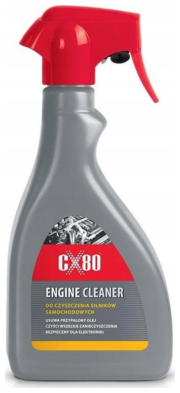 Παρασκεύασμα CX80 ENGINE CLEANERA για τον καθαρισμό κινητήρων αυτοκινήτων ΙΔΙΟΤΗΤΕΣ: περιέχει πρόσθετα που διαλύουν εύκολα καμένο λάδι, γράσα αυτοκινήτου, λεκέδες βενζίνης και ξεραμένες ακαθαρσίες • ασφαλές για ηλεκτρονικά, ECU (υπολογιστές) και ηλεκτρικά καλώδια • δεν περιέχει ιόντα με χαμηλή αγωγιμότητα. • δεν σχηματίζει άλατα μετά το στέγνωμα ΕΦΑΡΜΟΓΗ: εξωτερικό πλύσιμο κινητήρων αυτοκινήτων • σχεδιασμένο ειδικά για σύγχρονους Κινητήρες TDI, TDCi, CDTi, JTDm.{Type} Φροντίδα πλαισίου