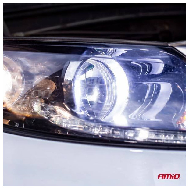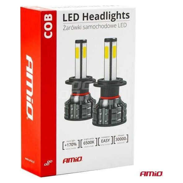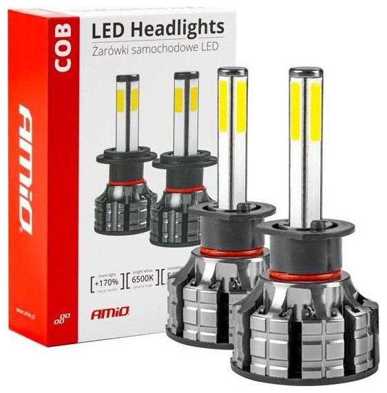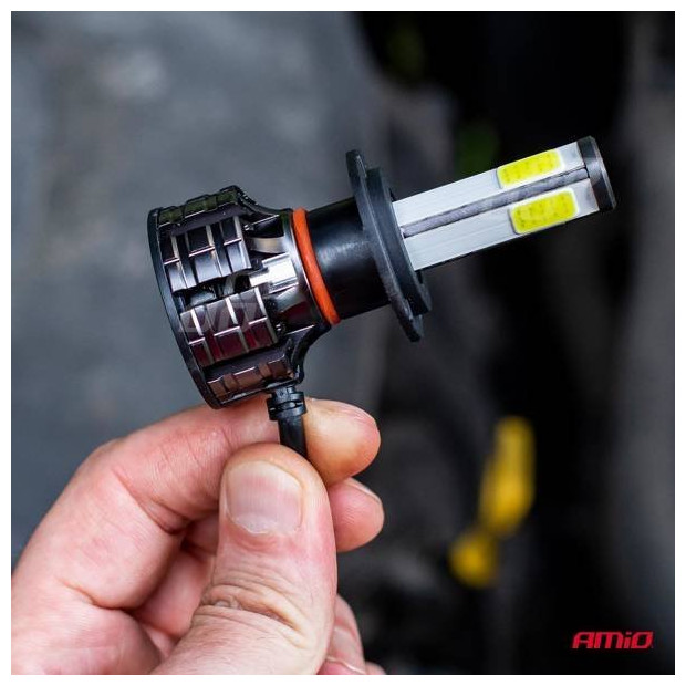 Komplet wysokiej jakości żarówek wykonanych w nowoczesnej i energooszczędnej technologii COB Żarówki Headlight COB 4Side charakteryzują się bardzo wysoką jakością wykonania. Specjalnie zaprojektowany radiator w połączeniu z chłodzeniem aktywnym zapewniają, że żarówki będą pracować w granicach swojej specyfikacji i nie przegrzeją się. TECHNOLOGIA LED Źródła światła wykonane w technologii COB są efektywniejsze w procesie przemiany energii elektrycznej na światło widzialne w porównaniu do tradycyjnych żarówek halogenowych. Cechują się zwiększoną energooszczędnością i zmniejszonym wydzielaniem ciepła. AKTYWNE CHŁODZENIE Każda z żarówek wyposażona została w aktywny układ chłodzenia, składający się z wentylatora. W ten sposób możliwe jest efektywne odprowadzanie ciepła z radiatora, a co za tym idzie szybsze odprowadzanie ciepła wydalanego przez diody COB. Zastosowanie tego rozwiązania zapobiega przegrzewaniu się diod, co pozytywnie wpływa na ich żywotność. Seria COB 2Side wyróżnia się bardzo atrakcyjną ceną, aktywnym układem chłodzenia, niewielkimi rozmiarami oraz wyjątkową bezawaryjnością. Instalacja zestawu jest tak samo prosta jak wymiana standardowej żarówki halogenowej. Bez czasochłonnych modyfikacji istniejącej instalacji oraz ryzykownych przeróbek. PARAMETRY TECHNICZNE: Model: H1 COB 4Side Barwa biała: 6500K Diody (komplet): 2 x COB Napięcie: 12/24V Strumień świetlny: 3800lm Pobór mocy: 38W Pobór prądu: ~1700mA (12V) Obudowa: Stop aluminium 6063 Chłodzenie: Aktywne - wentylator Temperatura pracy: -40°C - +50°C CANBUS: Nie Zakłócenia: Nie zakłóca radia Homologacja: R10 Długość żarówki : 75 mm *Podane wartości dla kompletu 2 żarówek