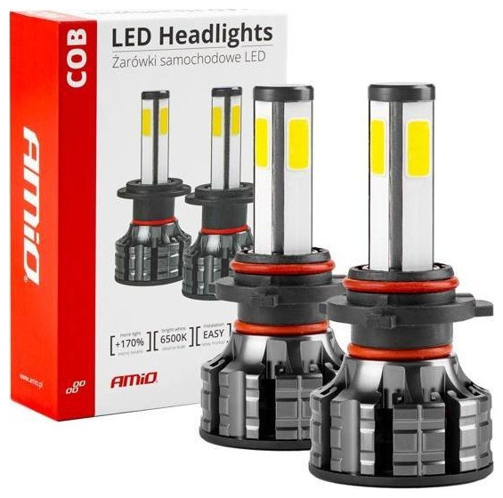 Komplet wysokiej jakości żarówek wykonanych w nowoczesnej i energooszczędnej technologii COB Żarówki Headlight COB 4Side charakteryzują się bardzo wysoką jakością wykonania. Specjalnie zaprojektowany radiator w połączeniu z chłodzeniem aktywnym zapewniają, że żarówki będą pracować w granicach swojej specyfikacji i nie przegrzeją się. TECHNOLOGIA LED Źródła światła wykonane w technologii COB są efektywniejsze w procesie przemiany energii elektrycznej na światło widzialne w porównaniu do tradycyjnych żarówek halogenowych. Cechują się zwiększoną energooszczędnością i zmniejszonym wydzielaniem ciepła. AKTYWNE CHŁODZENIE Każda z żarówek wyposażona została w aktywny układ chłodzenia, składający się z wentylatora. W ten sposób możliwe jest efektywne odprowadzanie ciepła z radiatora, a co za tym idzie szybsze odprowadzanie ciepła wydalanego przez diody COB. Zastosowanie tego rozwiązania zapobiega przegrzewaniu się diod, co pozytywnie wpływa na ich żywotność. Seria COB 4Side wyróżnia się bardzo atrakcyjną ceną, aktywnym układem chłodzenia, niewielkimi rozmiarami oraz wyjątkową bezawaryjnością. Instalacja zestawu jest tak samo prosta jak wymiana standardowej żarówki halogenowej. Bez czasochłonnych modyfikacji istniejącej instalacji oraz ryzykownych przeróbek. PARAMETRY TECHNICZNE: Model: HB4 COB 4Side Barwa biała: 6500K Diody (komplet): 4 x COB Napięcie: 12/24V Strumień świetlny: 3800lm Pobór mocy: 38W Pobór prądu: ~1700mA (12V) Obudowa: Stop aluminium 6063 Chłodzenie: Aktywne - wentylator Temperatura pracy: -40°C - +50°C CANBUS: Nie Zakłócenia: Nie zakłóca radia Homologacja: R10 Długość żarówki : 75 mm *Podane wartości dla kompletu 2 żarówek