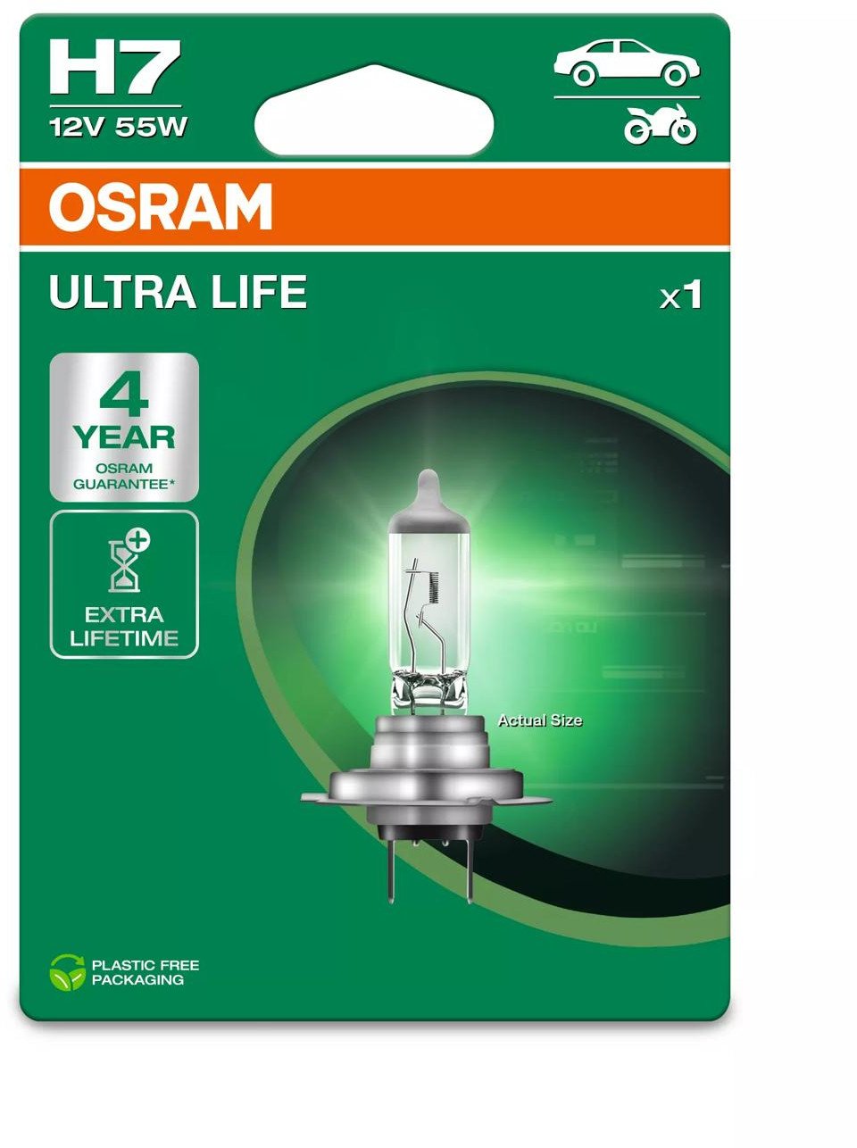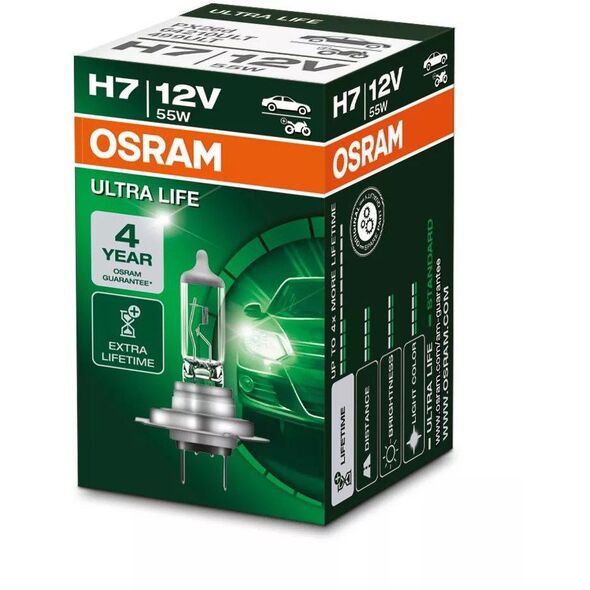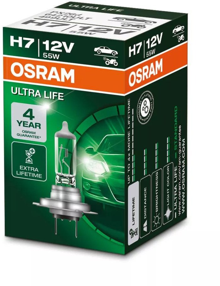 Λαμπτήρες αυτοκινήτου OSRAM Ultra Life, H7, PX26d, 55 W, 2 τεμ.