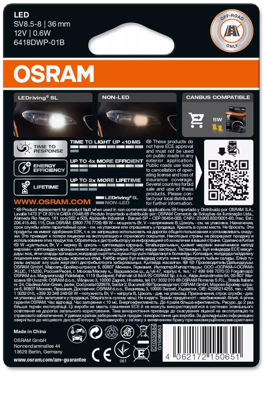 Λάμπα αυτοκινήτου OSRAM LED Retrofit 0.5W 12V SV8.5-85 1 τεμ