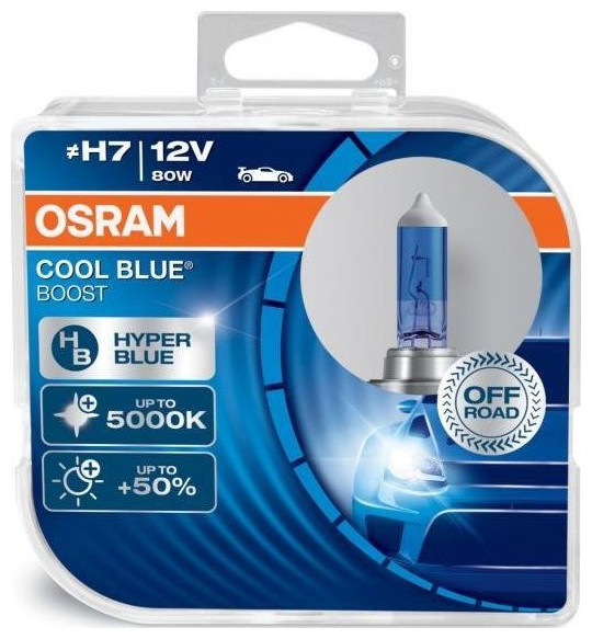 Szczególnie niebieskie światło. Jasna temperatura barwowa do 5000 K. Wydajność światła do 50% wyższa niż w przypadku standardowych żarówek. Wybierz OSRAM Cool Blue Boost i uzyskaj dwa w jednym: stylowe białe światło i dodatkowy strumień świetlny. Żarówki do użytku w terenie. Napięcie, V: 12 Moc, W: 80 Cokół: PX26d Barwa światła: 5000 K.