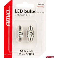 Λαμπτήρες LED CANBUS Festoon C5W 2SMD 3838 31mm Λευκό 12V 24V AMIO-04247
