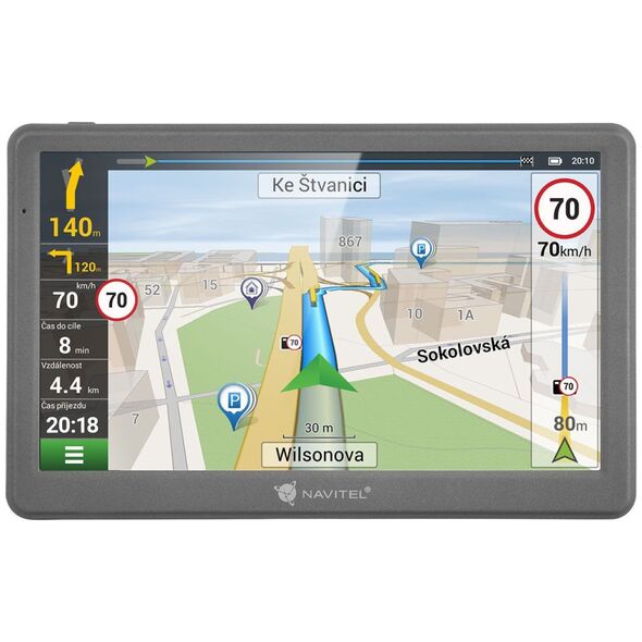 Το Navitel E700 διαθέτει φωτεινή, μεγάλη οθόνη αφής (16:9) με διαγώνιο 7" ανάλυσης 800×480, κατασκευασμένη σε τεχνολογία TFT, η οποία εγγυάται καθαρή και ευανάγνωστη εικόνα. Χάρη σε αυτό, τα εικονίδια λειτουργίας στο Η οθόνη και οι υπόλοιπες παράμετροι είναι πολύ ευδιάκριτα, ακόμη και από μεγαλύτερη απόσταση. Επιπλέον, το εγκατεστημένο λειτουργικό σύστημα Windows CE λειτουργεί εξαιρετικά ομαλά και δεν κλείνει η συσκευή Μπορείτε να το τοποθετήσετε εύκολα και σταθερά στο παρμπρίζ του αυτοκινήτου και να το προσαρμόσετε εάν χρειάζεται.