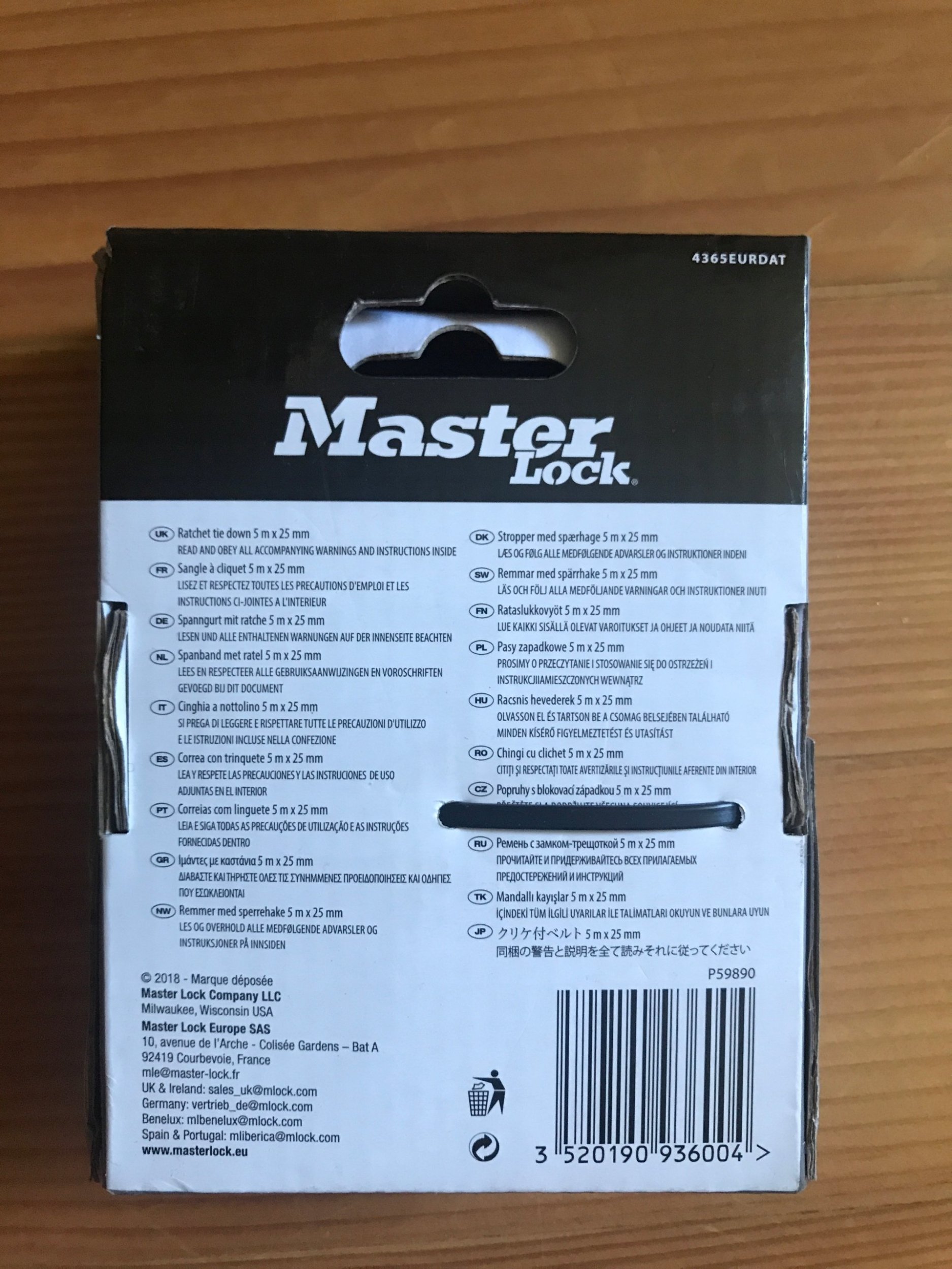 Ιμάντας πρόσδεσης με καστάνια MasterLock Master Lock 5m μπλε 4365EURDAT
