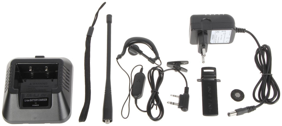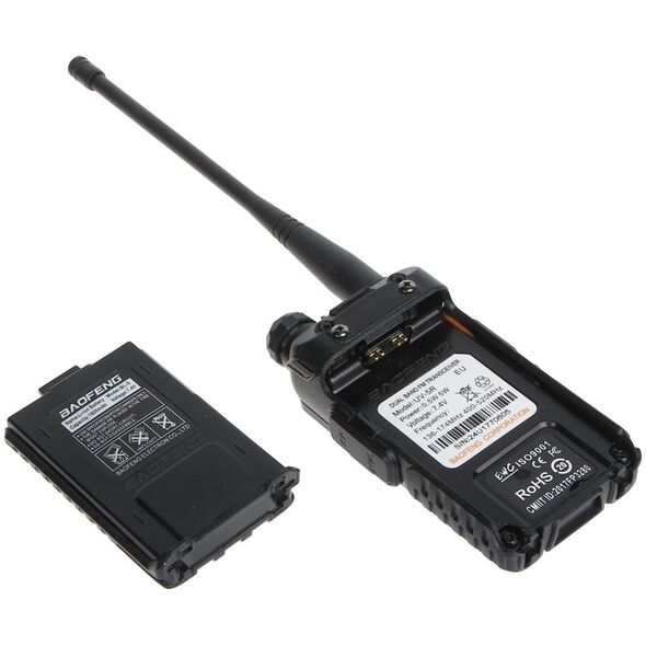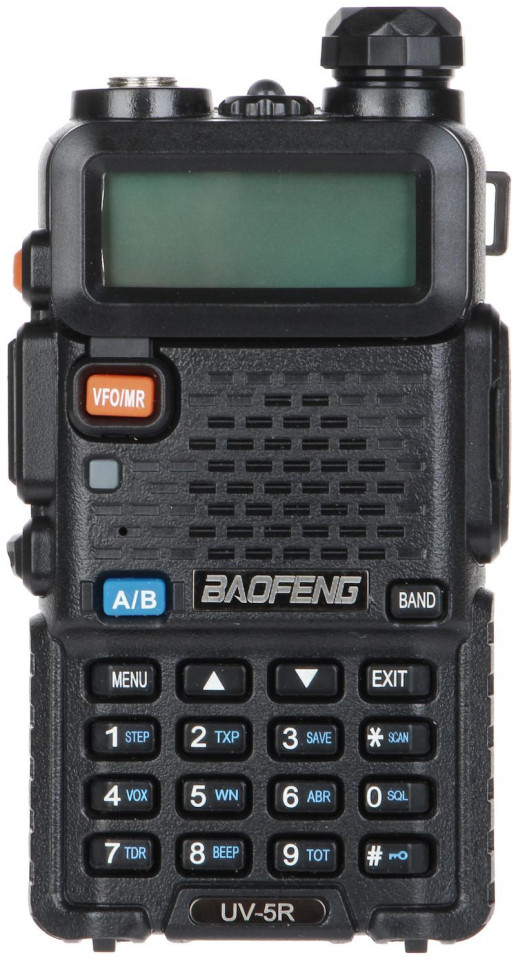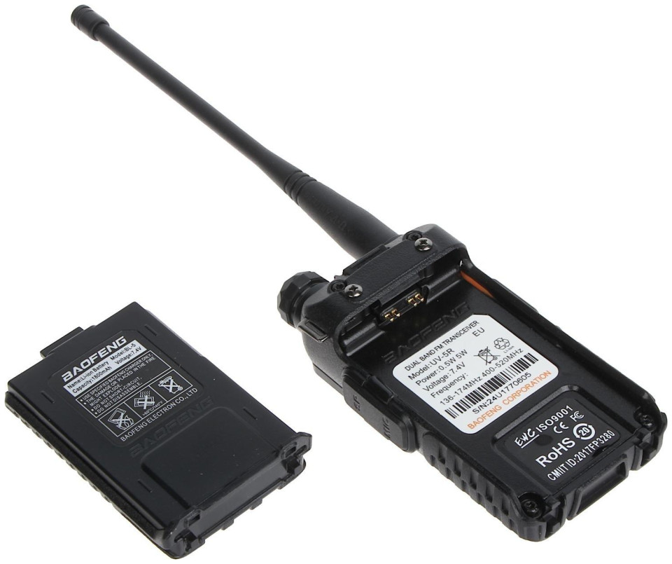 Dwupasmowy radiotelefon marki BAOFENG UV-5R (tzw. duobander) jest poręcznym urządzeniem umożliwiającym dwustronną komunikację radiową w pasmach VHF: 136 MHz ... 174 MHz oraz UHF: 400 MHz ... 520 MHz Urządzenie posiada możliwość obsługi kodów CTCSS i DCS w trybach normal oraz invert Ponadto radiotelefon umożliwia odbiór częstotliwości radia FM (UKF). Radiotelefon technicznie umożliwia pracę w zakresach częstotliwości PMR, Amatorskim, a także zakresach używanych przez Policję, Straż Pożarną, Pogotowie, Straż Miejską, PKP, TAXI, firmy ochroniarskie, pozostałe służby mundurowe oraz służby komunalne. Urządzenie zostało wyposażone w duży, czytelny, dwuliniowy wyświetlacz, który znacząco poprawia komfort użytkowania Ponadto radiotelefon wyposażono w funkcję oszczędzania energii oraz latarkę LED. Znajdująca się w komplecie stacja ładująca pozwala na umieszczenie w niej całego urządzenia lub tylko akumulatora. Uwaga! Radiotelefon UV-5R NIE JEST urządzeniem typu PMR. Możliwość jego używania należy odnieść do lokalnych przepisów prawa Do nadawania sygnału radiowego na terenie Polski przy użyciu tego urządzenia wymagane jest posiadanie pozwolenia radiowego wydawanego przez Urząd Komunikacji Elektronicznej.