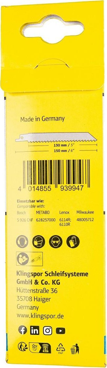 Klingspor KLINGSPOR ΛΑΜΑ ΓΙΑ ΣΠΑΘΟΣΕΓΑ 150x25,4x0,9mm RS 993 MA /5τμχ.