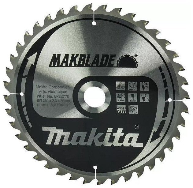 Makita ΠΡΙΟΝΙ ΚΑΡΒΙΔΙΟΥ ΓΙΑ ΞΥΛΟ 260*30/40Z (1 ΤΕΜ)