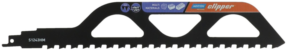 NORTON CLIPPER "S 1243 HM" ΛΑΜΑ ΠΡΙΟΝΙΟΥ RECIMER Η παλινδρομική λάμα του πριονιού επιτρέπει στο χρήστη να κόβει γρήγορα αεριωμένο σκυρόδεμα και τούβλα κηρήθρας. Είναι κατασκευασμένο από καρβίδιο, το οποίο εξασφαλίζει ανθεκτικότητα. Μέγιστο ύψος υλικού: - Τούβλα μεσαίου μεγέθους με πάχος έως 215 mm (ποροτόνιο, ινοτσιμέντο, πορώδες σκυρόδεμα, κόκκινο τούβλο ΤΕΧΝΙΚΕΣ ΠΑΡΑΜΕΤΡΟΙ Υλικό Καρβίδιο TPI 2T Μήκος εργασίας 260 mm Συνολικό μήκος 304 mm Προβλεπόμενη χρήση Κυψελοειδή τούβλα, Μηχανή πορομπετόν). Παλσοφόρο πριόνι Τύπος κοπής Γρήγορος αριθμός τεμαχίων μέσα πακέτο 1{Type} Λεπίδες πριονιού . {Type} Λεπίδες πριονιού