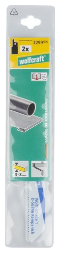 wolfcraft GmbH 2299000. Τύπος προϊόντος: Πριονόλαμα, Κατάλληλο για υλικά: Μη σιδηρούχα μέταλλα, Λαμαρίνα, Χάλυβας, Υλικό λεπίδας: Διμέταλλο. Μήκος εργασίας: 13 cm, Διάσταση δοντιών λεπίδας: 2,5 mm, Πάχος κοπής (μέγιστο): 8 mm. Συνολικό μήκος: 15 cm. Ποσότητα ανά συσκευασία: 2 τεμ. Χώρα προέλευσης: Γερμανία{Type} Λεπίδες πριονιού . {Type} Λεπίδες πριονιού