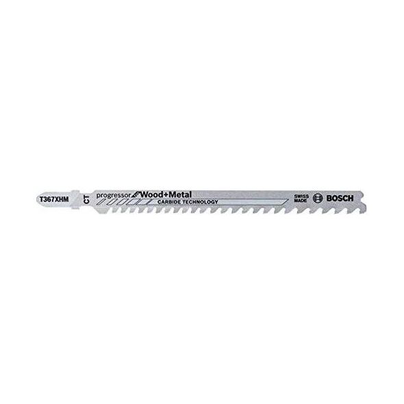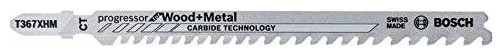 Η λεπίδα σέγας T 367 XHM Bosch Progressor για ξύλο και μέταλλο είναι ιδιαίτερα στιβαρή για γρήγορες ευθείες κοπές σε λεπτό και χοντρό ξύλο, ακόμη και με μέταλλο. Η γεωμετρία των δοντιών με προοδευτικά αυξανόμενη οδόντωση επιτρέπει τη χρήση με υλικά διαφόρων πυκνοτήτων. Τα γειωμένα δόντια έχουν σχεδιαστεί για να κόβουν γρήγορα μια μεγάλη ποικιλία υλικών ξύλου και μετάλλου. Το πλαίσιο είναι συγκολλημένο σε ένα εξαιρετικά εύκαμπτο σώμα από ανθρακούχο χάλυβα χρησιμοποιώντας τεχνολογία καρβιδίου που κόβει τα πιο ανθεκτικά ξύλινα υλικά με ενσωματωμένα ισχυρά μεταλλικά μέρη (π.χ. σκληρυμένα καρφιά, βίδες). Η μεγάλη προοδευτική διαδρομή (3,5 - 5 mm) και το μήκος (132 mm) επιτρέπουν την κοπή διαφόρων υλικών πάχους έως 65 mm.