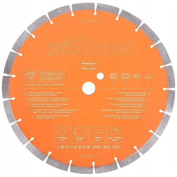 Λάμα κοπής Evolution Diamond premium 300 mm με υψηλό επίπεδο διαμαντιών, τμηματοποιημένη άκρη και τρύπα 22,2 mm Κατασκευαστής: Evolution Power Tools Οι λεπίδες διαμαντιών Evolution Premium 300 mm είναι ένα εξαιρετικά αποτελεσματικό εργαλείο για την κοπή σκληρών υλικών όπως σκυρόδεμα, τούβλα ή χάλυβας. Σχεδιασμένα με γνώμονα τους επαγγελματίες, διαθέτουν υψηλό επίπεδο διαμαντιών που παρέχουν 10% ταχύτερη κοπή και μεγαλύτερη διάρκεια ζωής από τις παραδοσιακές λεπίδες με διαμάντια γενικής χρήσης Χάρη στις τμηματοποιημένες άκρες των λεπίδων, επιτρέπουν την επιθετική κοπή τόσο της σκληρής όσο και της λειαντικής τοιχοποιίας. σκληρό τούβλο, μπλοκ, κεραμίδια στέγης, πέτρες, πέτρα, σκυρόδεμα και χάλυβας. Κατασκευασμένα από θερμή σφράγιση, έχουν σχεδιαστεί για εφαρμογές που απαιτούν την υψηλότερη απόδοση και αξιοπιστία. Οι λεπίδες είναι συμβατές με τα πριόνια σκυροδέματος R300DCT και R300DCT+ της Evolution Power Tools. Η κομψή πορτοκαλί συσκευασία, η ελαφριά κατασκευή και η χρήση υλικών υψηλότερης ποιότητας καθιστούν τις λεπίδες διαμαντιών 300 mm όχι μόνο αποτελεσματικές, αλλά και άνετες στη χρήση με το πριόνι σκυροδέματος R300DCT και το πριόνι σκυροδέματος R300+ διαμάντια που παρέχουν 10% ταχύτερη κοπή και μεγαλύτερη διάρκεια ζωής σε σύγκριση με τις παραδοσιακές μας λεπίδες διαμαντιών γενικής χρήσης, εσωτερική δοκιμή Σχεδιασμένο για επιθετική κοπή τόσο σκληρής όσο και λειαντικής τοιχοποιίας, σκληρού τούβλου, μπλοκ, πλακιδίων, πλακοστρώσεων, πέτρας, σκυροδέματος και χάλυβα Ιδανικό για επαγγελματίες καλλιτέχνες και κτίστες Βάρος αντικειμένου: 1,2 κιλά Αριθμός εξαρτημάτων: 1 Μάρκα: Evolution αριθμός ανταλλακτικού: PD300SEG- Χρώμα CS: πορτοκαλί βάρος συσκευασίας: 1,36 κιλά Κατασκευαστής: Ο προμηθευτής Evolution Power Tools δήλωσε κανονισμός dg hz: μη_εφαρμόσιμο συμβατό υλικό: Σκυρόδεμα, Τούβλο, κράμα χάλυβα Όνομα αντικειμένου: Διαμάντι Εξέλιξη λεπίδας κοπής υψηλής ποιότητας 300 mm με υψηλό επίπεδο διαμαντιών, τμηματοποιημένη άκρη και οπή 22,2 mm Τύπος τροφοδοτικού: Υλικό AC: Διαμάντι