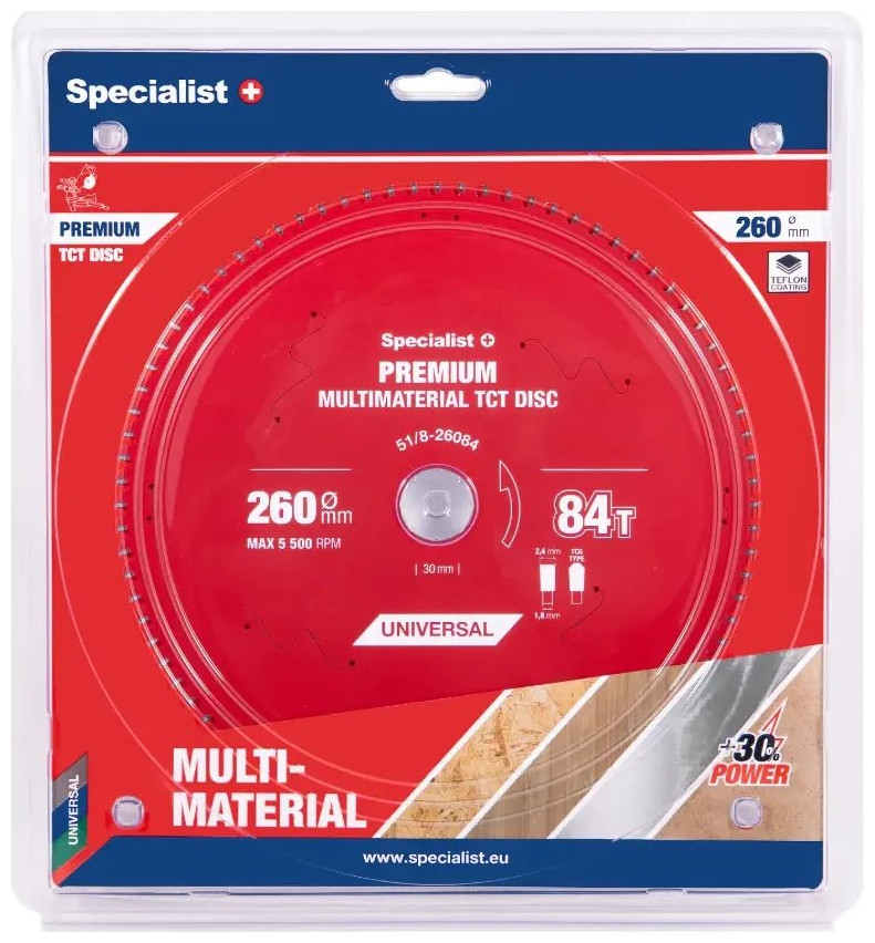 Δίσκος κοπής 260x84Tx30mm, Πολυυλικό PREMIUM, SPECIALIST+