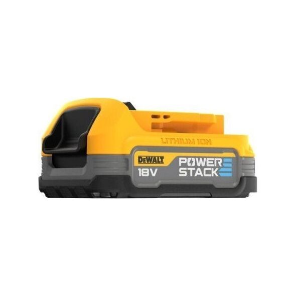 DEWALT DCBP034 Akumulator POWERSTACK 18V 1,7Ah Przygotuj się na wydajność, jakiej nie doświadczyłeś nigdy wcześniej. Kompaktowy akumulator DEWALT POWERSTACK™ 18 V wykorzystuje rewolucyjną technologię zespolonych akumulatorowych ogniw kieszeniowych, dzięki czemu jest naszym najmocniejszym i najlżejszym akumulatorem. Dwukrotnie dłuższa żywotność liczona na podstawie cykli ładowania w porównaniu z kompaktowymi akumulatorami DEWALT 2 Ah (DCB183) sprawia, że ta innowacja będzie wyznaczać nowe standardy w branży.Naładowany energią! 50% więcej mocy Kompaktowy akumulator DEWALT POWERSTACK™ zapewnia o 50% więcej mocy i wykorzystuje technologię zespolonych akumulatorowych ogniw kieszeniowych. Umożliwia pracę w ciasnych przestrzeniach 25% bardziej kompaktowy Zwiększ liczbę narzędzi w skrzynce narzędziowej i pracuj w trudno dostępnych miejscach dzięki o 25% mniejszemu akumulatorowi Nie odczujesz obciążenia 15% mniejsza masa Dzięki wydajnemu, o 15% lżejszemu akumulatorowi możesz komfortowo wykonywać pracę, która wymaga trzymania narzędzia w górze. *w porównaniu z akumulatorem DCB183Pełna kompatybilność z produktami XR 18 V Kompaktowy akumulator DEWALT POWERSTACK™ XR 18 V jest kompatybilny z pełną gamą narzędzi i ładowarek XR 18 V.