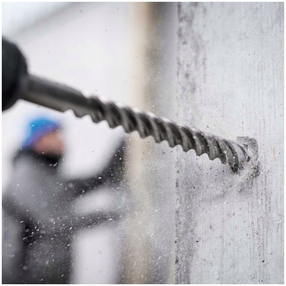 SDS-MAX-8X DRILL 32mm x 800/920 Αριθμός καταλόγου: 2608578655 Κατασκευαστής: BOSCH Μεγαλύτερη διάρκεια ζωής σε εφαρμογές οπλισμένου σκυροδέματος: κρουστικό τρυπάνι Bosch SDS max-8X με τέσσερα μαχαίρια Διάμετρος (D) mm - 32,0 mm - Μήκος εργασίας (L) 800,0 Συνολικό μήκος (L2) mm - Στήριγμα SDS-max 920.0 Το σφυροτρύπανο SDS max-8X που χρησιμοποιείται ακόμα και στις πιο απαιτητικές εφαρμογές έχει 50% μεγαλύτερη αντοχή. Η κεφαλή τεσσάρων λεπίδων, εξ ολοκλήρου κατασκευασμένη από πυροσυσσωματωμένο καρβίδιο, εγγυάται εξαιρετική απόδοση και αντοχή κατά τη διάτρηση σε οπλισμένο σκυρόδεμα. Το τρυπάνι είναι εξαιρετικά ανθεκτικό στο φορτίο και τη θερμοκρασία χάρη στην ισχυρή και ανθεκτική συγκολλημένη σύνδεση μεταξύ του χαλύβδινου σώματος και της κεφαλής καρβιδίου. Ένα εξαιρετικά αιχμηρό κεντράρισμα με γωνία 90° εξασφαλίζει ακριβή έναρξη διάτρησης Το τρυπάνι προορίζεται για διάτρηση σε σκυρόδεμα και οπλισμένο σκυρόδεμα. Το τρυπάνι μπορεί να χρησιμοποιηθεί με όλες τις μάρκες κρουστικών τρυπανιών SDS max. Ιδιαίτερα ανθεκτικό και συμπαγές για διάτρηση σε οπλισμένο σκυρόδεμα - το νέο σφυροτρύπανο SDS max-8X της Bosch καλύπτει αυτή την ανάγκη του χρήστη. Το SDS max-8X είναι το μοναδικό σφυροδράπανο τεσσάρων φλάουτων στην αγορά με πλήρη κεφαλή καρβιδίου βολφραμίου, προσφέροντας διάμετρο έως 28 χιλιοστά - δημοφιλή μοντέλα με μέγιστη διάμετρο 16 χιλιοστά. Αυτό είναι δυνατό χάρη στη μοναδική τεχνολογία συγκόλλησης διάχυσης (IDS) της Bosch. Το πλεονέκτημα είναι η μεγάλη διάρκεια ζωής: το SDS max-8X προσφέρει διάρκεια ζωής 50 τοις εκατό μεγαλύτερη από τον προκάτοχό του SDS max-7, ο οποίος είχε ήδη μεγαλύτερη διάρκεια ζωής από τα αντίστοιχα μοντέλα του ανταγωνισμού. Διάτρηση σε οπλισμένο σκυρόδεμα, ράβδοι οπλισμού ή σωλήνες οδήγησης μέσα από τοίχους: Το πεδίο εφαρμογής καλύπτει όλες τις κοινές εφαρμογές στο τμήμα SDS max με διαμέτρους από 12 έως 28 χιλιοστά.{Τύπος τοποθέτησης} SDS MAX . {Τύπος τοποθέτησης} SDS MAX . {Τύπος τοποθέτησης} SDS MAX . {Τύπος τοποθέτησης} SDS MAX . {Τύπος τοποθέτησης} SDS MAX . {Τύπος τοποθέτησης} SDS MAX . {Τύπος τοποθέτησης} SDS MAX . {Τύπος τοποθέτησης} SDS MAX . {Τύπος τοποθέτησης} SDS MAX . {Τύπος τοποθέτησης} SDS MAX . {Εφαρμογή} για σκυρόδεμα. {Εφαρμογή} για σκυρόδεμα. {Εφαρμογή} για σκυρόδεμα. {Εφαρμογή} για σκυρόδεμα. {Εφαρμογή} για σκυρόδεμα. {Εφαρμογή} για σκυρόδεμα. {Εφαρμογή} για σκυρόδεμα. {Εφαρμογή} για σκυρόδεμα. {Εφαρμογή} για σκυρόδεμα. {Application} για σκυρόδεμα
