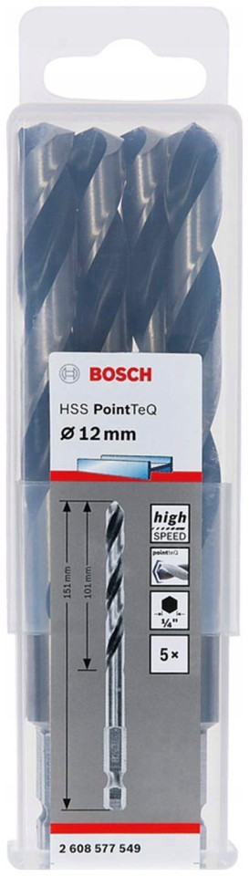 BOSCH - Wiertło stożkowe HSS PointTeQ Do wiertarko - wkrętarek obrotowych Wiertło stożkowe HSS PointTeQ pozwala na szybkie wiercenie w metalu Samocentrująca się końcówka umożliwia bezproblemowe rozpoczęcie wiercenia bez ślizgania się narzędzia Szybsze wiercenie ogranicza wydzielanie ciepła i zużycie wiertła Uchwyt sześciokątny zapewnia pełne przenoszenie mocy w standardowych wiertarkach trójszczękowych. Szybkie wiercenie w metalu Wiertło stożkowe HSS PointTeQ pozwala na szybkie wiercenie w metalu Szybsze wiercenie ogranicza wydzielanie ciepła i zużycie wiertła Końcówka PointTeQ nie tępi się i zapewnia wysoką trwałość Deskowanie oksydowane na czarno i giętki korpus obniżające ryzyko złamania; końcówka 135-stopni typu N, norma DIN 338 Uniwersalny trzpień sześciokątny 1/4 cala Uchwyt bitowy, pasujący do IXO, UNEO, PSR 200, PSR 300 LI lub innych wkrętarek. Wiertło spiralne HSS, z chwytem sześciokątnym 1/4" Szczegóły: Średnica (D) mm: 12,00 Długość robocza (L1) mm: 101 Długość całkowita (L2) mm: 151 Średnica chwytu (d) mm: 6,35 Nr.Katalogowy; 2 608 577 549