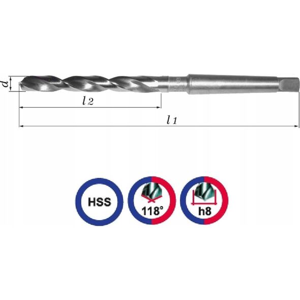 Τρυπάνι για μέταλλο Baildon DIN 345 RN NWKc 18,5 mm, HSS (S), 233-135 mm (λαβή MK2)