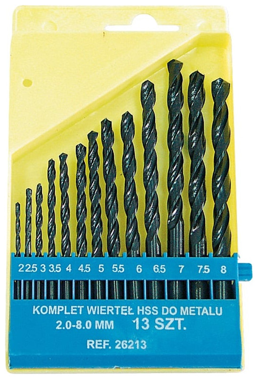 Τρυπάνια μετάλλων HSS, σετ 13 τεμαχίων. 2,0-8,0 mm - 26213