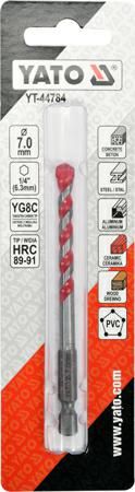 Τρυπάνι Yato `Πολυχρηστικό τρυπάνι 7,0x85 mm. λαβή 1/4"Hex (μπετόν, κεραμικά, χάλυβας, αλουμίνιο, PVC, ξύλο)
