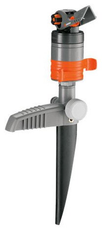 Ο ψεκαστήρας τουρμπίνας GARDENA Comfort σας επιτρέπει να ποτίζετε αθόρυβα το γκαζόν σας. Είναι κατασκευασμένο από ανθεκτικό πλαστικό, επομένως είναι πολύ αθόρυβο. Η πατενταρισμένη κίνηση τουρμπίνας είναι ανθεκτική στη βρωμιά. Λειτουργεί σχεδόν αθόρυβα και κατανέμει το νερό ομοιόμορφα χάρη στη λειτουργία ποτίσματος δύο ζωνών και τη χρήση ενός βέλτιστου διαμορφωμένου εκτροπέα. Οι ειδικά τοποθετημένοι δακτύλιοι ρύθμισης επιτρέπουν την εύκολη ρύθμιση του αρδευόμενου τομέα από 20° έως 360°. Ο επιλεγμένος τομέας μπορεί εύκολα να αναγνωριστεί ανά πάσα στιγμή με βάση τη θέση των δακτυλίων ρύθμισης. Ένα μεγάλο, εύχρηστο πόμολο σάς επιτρέπει να ρυθμίζετε εύκολα το εύρος ρίψης. Το εύρος μπορεί να ρυθμιστεί από 5 έως 12 m Περιοχή ψεκασμού από 75 έως 450 m². Ο ψεκαστήρας είναι τοποθετημένος σε πλαστικό πείρο που εξασφαλίζει ασφαλή και σταθερή τοποθέτηση στο γκαζόν. Μπορείτε εύκολα να το αφαιρέσετε και να μετακινήσετε τον ψεκαστήρα σε άλλο σημείο. Ο καταιωνιστής είναι εξοπλισμένος με σύνδεση βρύσης GARDENA και καπάκι κλεισίματος. Είναι άμεσα έτοιμο για χρήση στον κήπο. Εξοπλισμένο με φίλτρο με λεπτό πλέγμα, το φίλτρο ακαθαρσιών συλλαμβάνει τη βρωμιά. Μπορεί να αφαιρεθεί και να καθαριστεί εύκολα. Για το πότισμα μεγαλύτερης έκτασης, μπορούν εύκολα να συνδεθούν αρκετοί καταιονιστήρες χρησιμοποιώντας τη σύνδεση βρύσης GARDENA.{Size [inch]} 1/2" . {Size [inch]} 1/2" . {Size [inch]} 1/2" . {Size [mm]} 13 mm . {Size [mm]} 13 mm . {Size [mm]} 13 mm . {Type} Pulse sprinklers . {Type} Pulse sprinklers . {Type} Pulse sprinklers