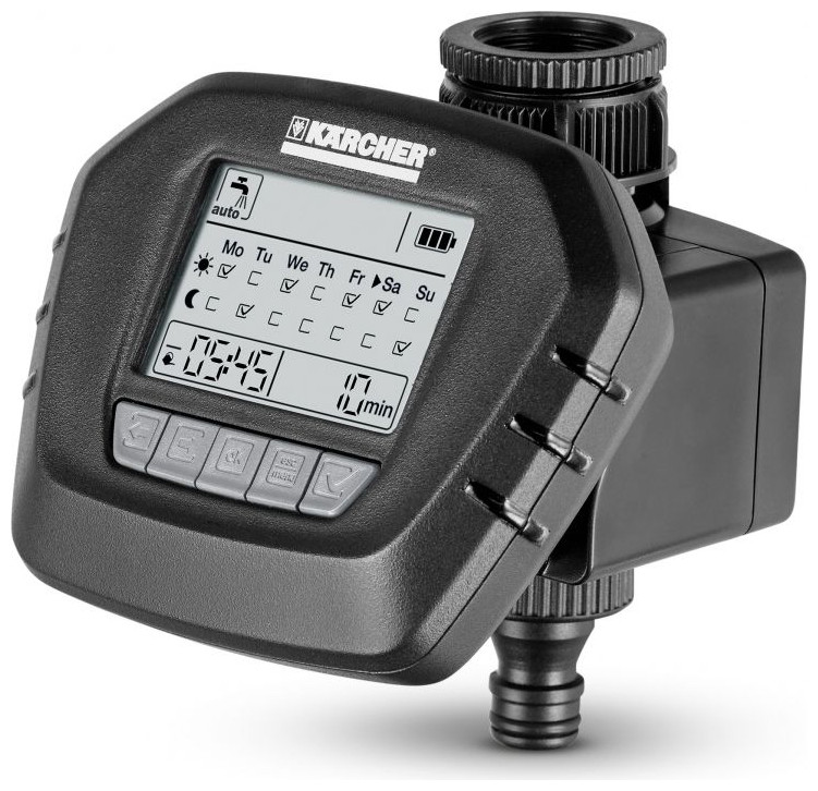 2 sesje nawadniania dziennie Moduł sterujący posiada możliwość ręcznego sterowania Wyświetlacz (do wygodnego programowania) można wyjmować Funkcja pauzy dezaktywuje nawadnianie na 24 h W zestawie filtr wstępny i adapter na kran Gdy bateria się wyczerpie podlewanie zostaje przerwane.