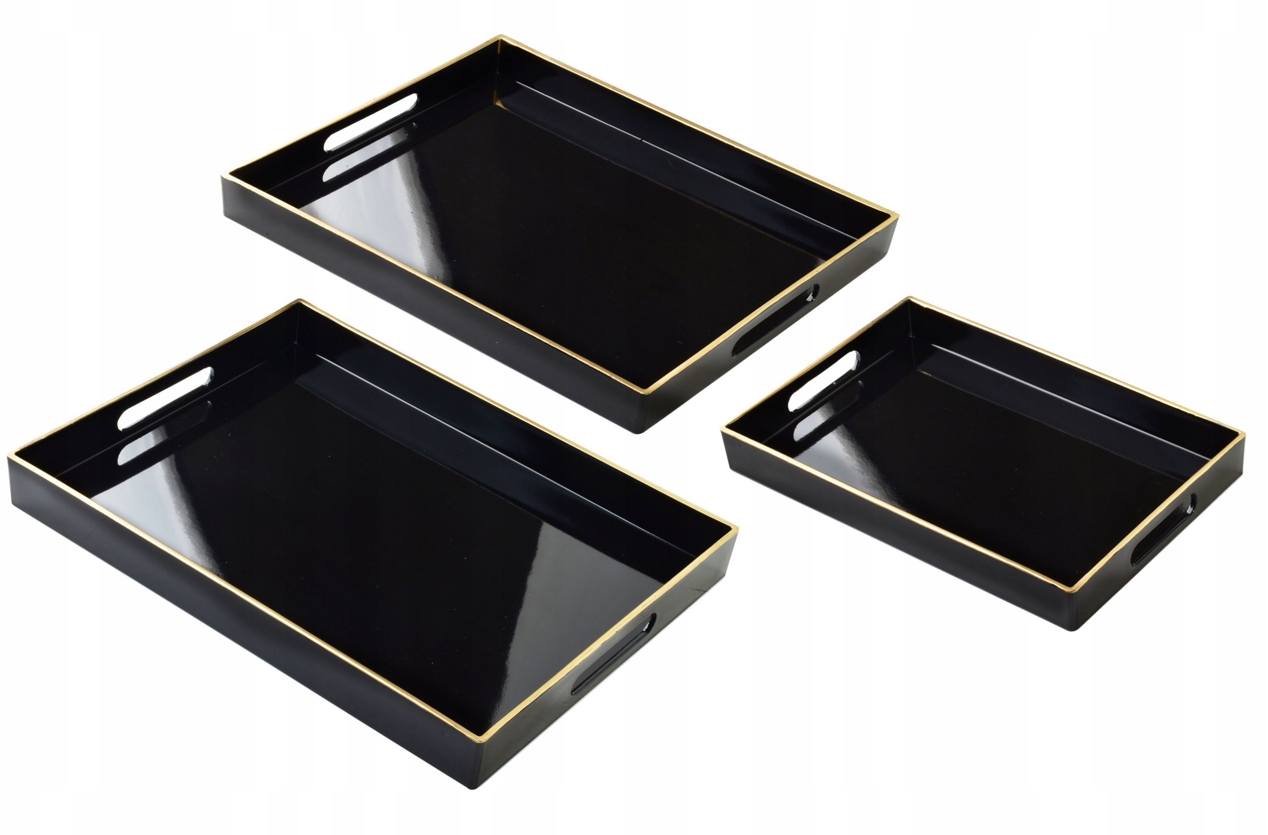 BLANCHE BLACK Σετ 3 Διακοσμητικών Δίσκων 40x30x4cm/35x25x3,5cm/30x20x3,5cm