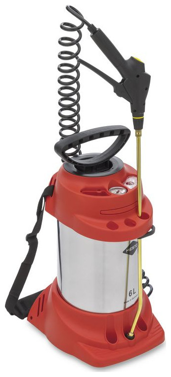 Βιομηχανικός ψεκαστήρας Mesto Inox Plus υψηλής ποιότητας. Σφραγίδες FPM (Viton®) ανθεκτικές σε: υψηλές θερμοκρασίες, λάδια, ορυκτά γράσα, καύσιμα, οξέα, θειικά άλατα, αμμωνία, χλωριούχα, αλυσίδες, αρωματικούς υδρογονάνθρακες (σε κατάλληλες συγκεντρώσεις), όζον, καιρικές συνθήκες. - συνολική χωρητικότητα: 9 λίτρα, - χωρητικότητα περιεχομένου: 6 λίτρα, - πίεση λειτουργίας: έως 6 bar! - ορειχάλκινη αντλία, λόγχη και επίπεδο ακροφύσιο με φίλτρο, - ορειχάλκινη λόγχη ψεκασμού 50 cm, περιστρεφόμενη 360°, επεκτεινόμενη, - σπειροειδής σωλήνας 2,5 m με κλειδαριά ασφαλείας, - τζάμι επιθεώρησης, - δεξαμενή: Η Mesto είναι Γερμανός κατασκευαστής προϊόντων υψηλής τεχνολογίας τεχνικά, επαγγελματικοί ψεκαστήρες χρησιμοποιούνται, μεταξύ άλλων, στις κατασκευές και τη βιομηχανία για την εφαρμογή διαφόρων τύπων υγρών. Για τον εμποτισμό ξύλου, τη στερέωση ξυλότυπου, τη συντήρηση λίθων, τις επεξεργασίες συντήρησης, την ψύξη κατά τη διάτρηση και πολλές άλλες επαγγελματικές εφαρμογές, οι ψεκαστήρες Mesto χαρακτηρίζονται από το υψηλό ποιοτικό πλεονέκτημα των υλικών που χρησιμοποιούνται στην παραγωγή και την προσεκτική κατασκευή.Ώμος {Type} . {Power} Πίεση . {Εφαρμογή} Βιομηχανική . {Χωρητικότητα} 9 λίτρα