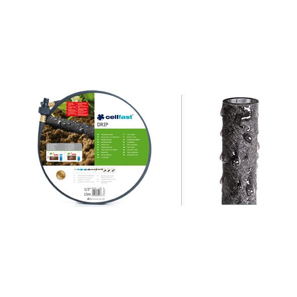 - σωλήνας για οικονομικό και ακριβές πότισμα φυτών - εξοικονομεί έως και 70% νερό εξαλείφοντας το φαινόμενο της εξάτμισης - ο σωλήνας μπορεί να δρομολογηθεί πάνω ή κάτω από την επιφάνεια του εδάφους (συνιστώμενο βάθος 15-20 cm) - κατανάλωση νερού ανάλογα με την πίεση εργασίας από 1 έως 10 l/h ανά 1 μέτρο - μπορεί να λειτουργήσει με πολύ χαμηλή πίεση νερού - τα τοποθετημένα άκρα χρησιμοποιούνται για γρήγορη σύνδεση εύκαμπτων σωλήνων - λειτουργεί καλύτερα όταν ποτίζετε φυτά που αναπτύσσονται σε συστάδες (φράκτες, παρτέρια, βραχόκηποι, λαχανόκηποι)