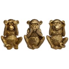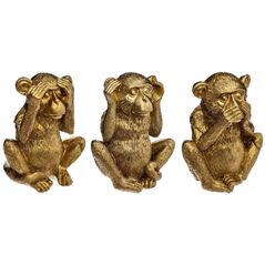 Τρεις σοφοί πίθηκοι, χρυσά αγαλματίδια από polyresin, ύψος 17 εκ.