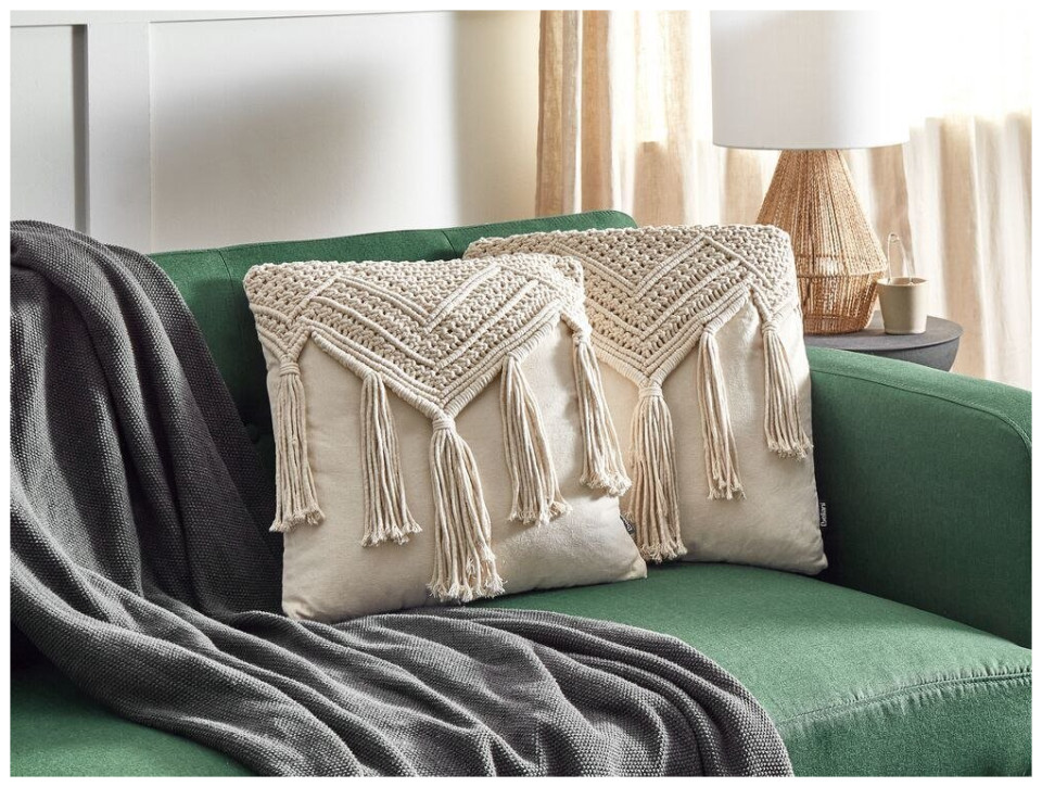 Σετ 2 διακοσμητικών μαξιλαριών μακραμέ 45 x 45 cm μπεζ BEDADI Lumarko!