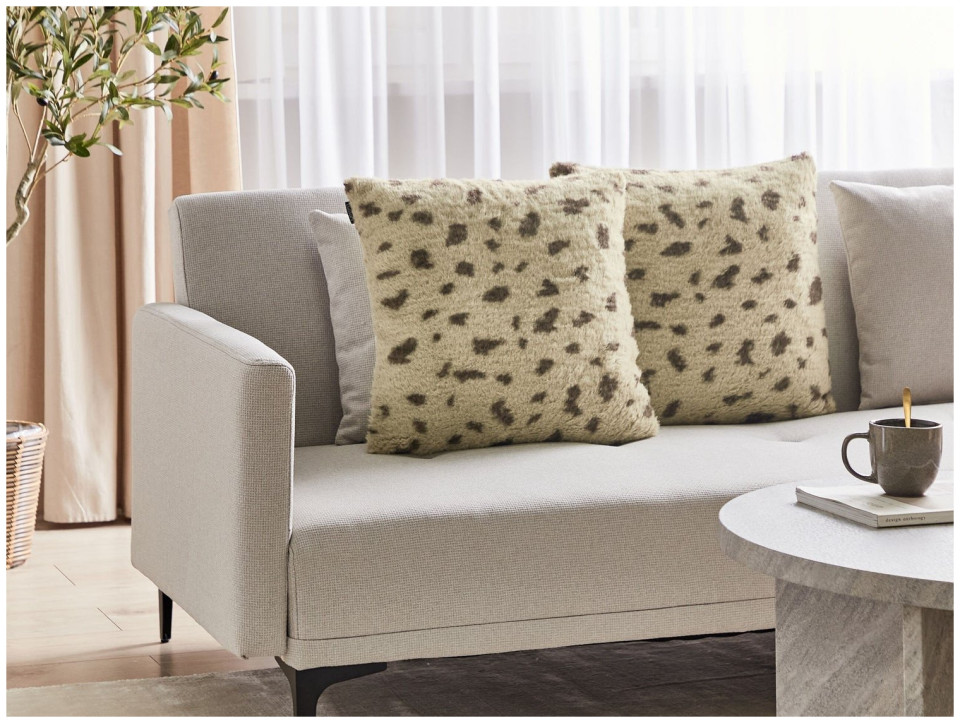 Σετ 2 διακοσμητικών μαξιλαριών KASRA Τεχνητή γούνα 45 x 45 cm Μπεζ Αφηρημένο σχέδιο Lumarko!