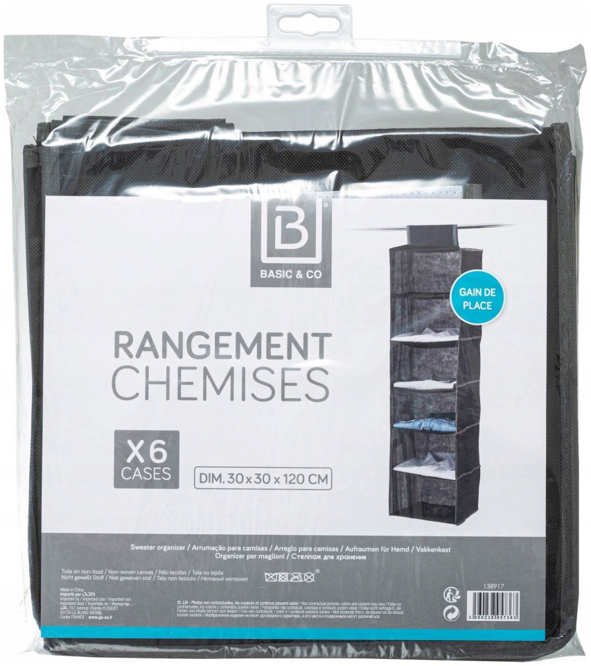 Τακτοποιήστε και οργανώστε τη ντουλάπα σας με την κρεμαστή θήκη από τη 5five. Η θήκη μπορεί να κρεμαστεί από τη ράγα της ντουλάπας ή της κρεμάστρας δαπέδου αφού διαθέτει ταινία velcro. Αποτελείται από 6 θέσεις και μπορείτε να τοποθετήσετε ρούχα, φουλάρια, τσάντες, ακόμα και παπούτσια. Χαρακτηριστικά