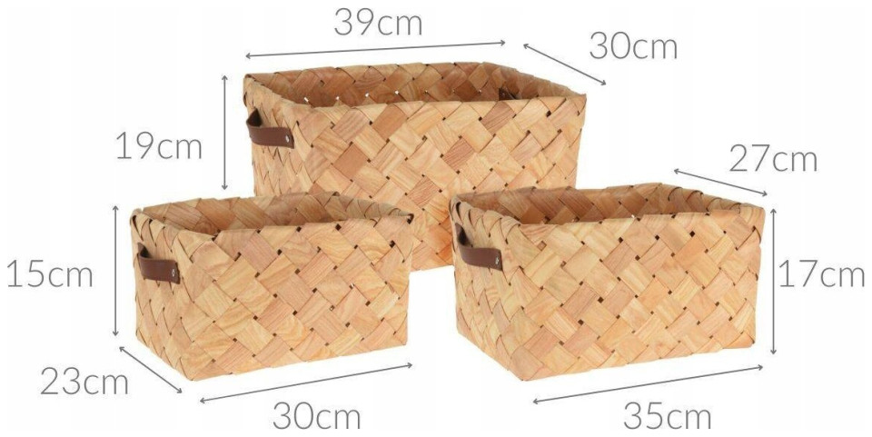 Home Styling Collection Σετ τριών πλεκτών καλαθιών, φυσικό