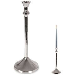 Home Styling Collection Κηροπήγιο για μακρύ κερί αλουμινίου ασημί 30,5 εκ.