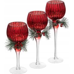 Κηροπήγιο από γυαλί με χριστουγεννιάτικο κλαδί, 3 τεμάχια