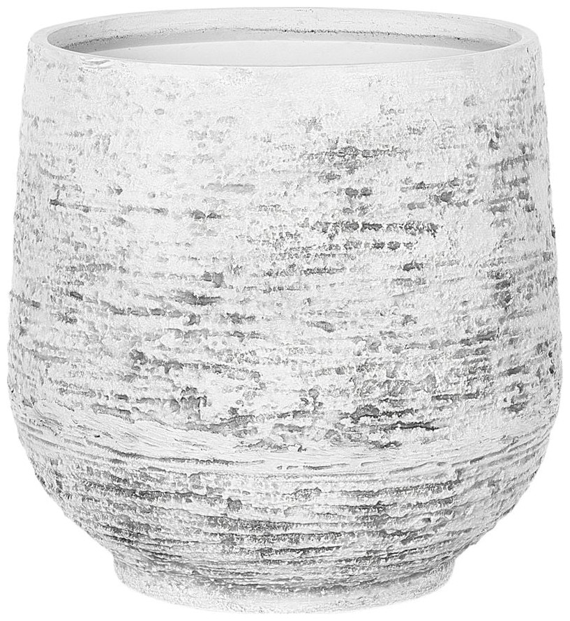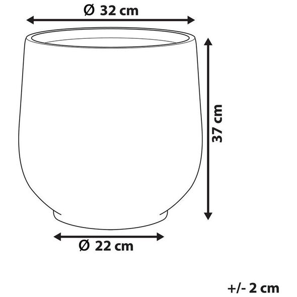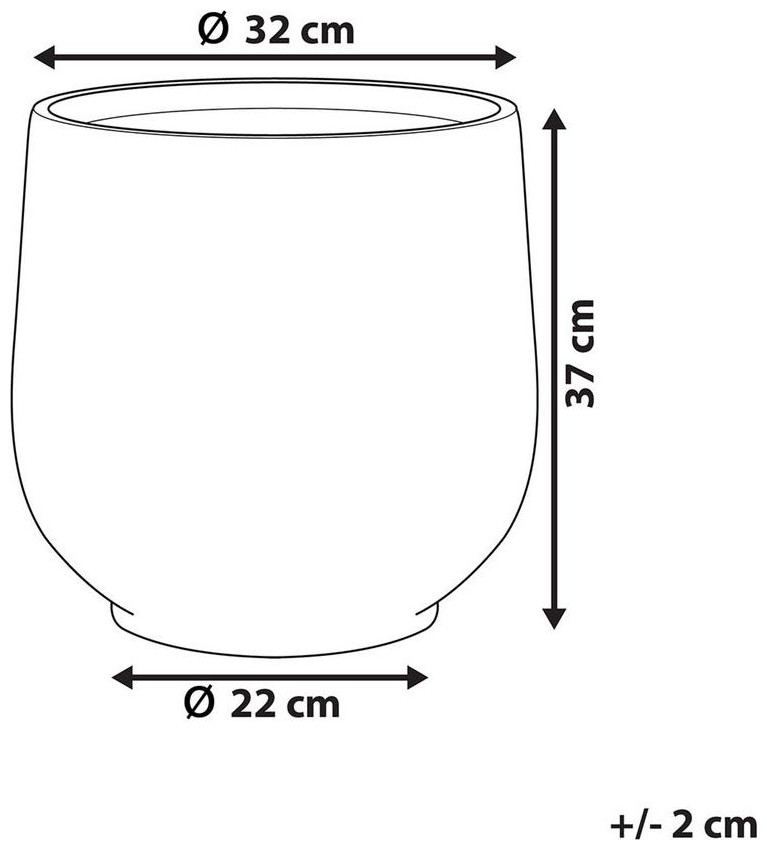 Doniczka, która pięknie ozdobi każdy ogród, balkon czy taras. Łączy w sobie klasyczny okrągły kształt i jasnoszare surowe wykończenie, które wyglądem przypomina naturalny kamień. Donica jest wykonana z mieszanki gliny i włókien szklanych, co sprawia, że jest odporna na promieniowanie UV i szkodliwe działanie zmiennej pogody. Wysokość: 37 Szerokość: 32 Głębokość: 32 Waga: 4.5 Materiał: Mieszanina gliny i włókien