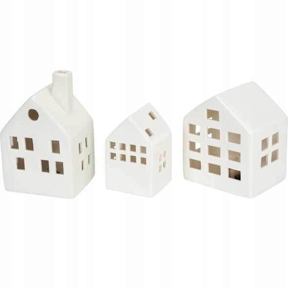 Κεραμικά σπιτάκια LED SCANDI, 3 φωτεινές διακοσμήσεις