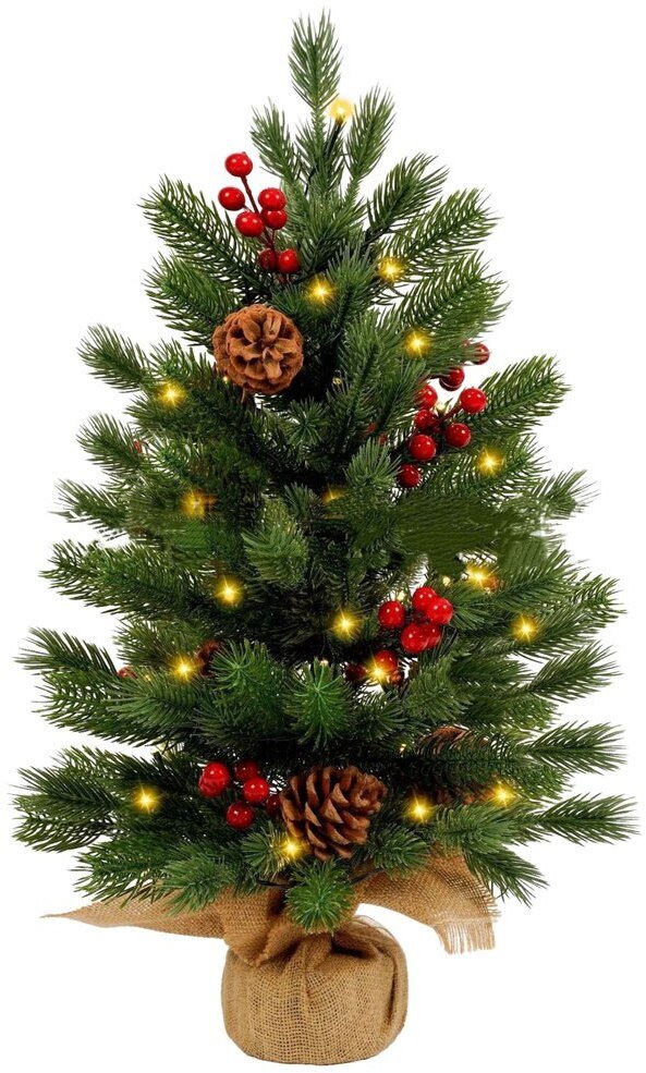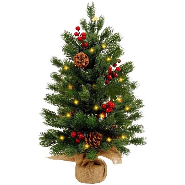 Choinka Ozdobna Dekoracyjna Sztuczna Czerwona Jarzębina Lampki LED 60 x 20 cm