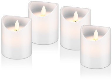 Τετράκομματο σετ LED κεριών από πραγματικό κερί, λευκό