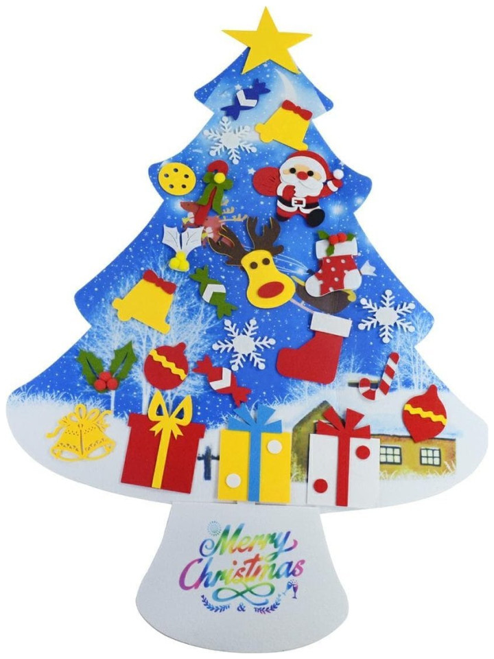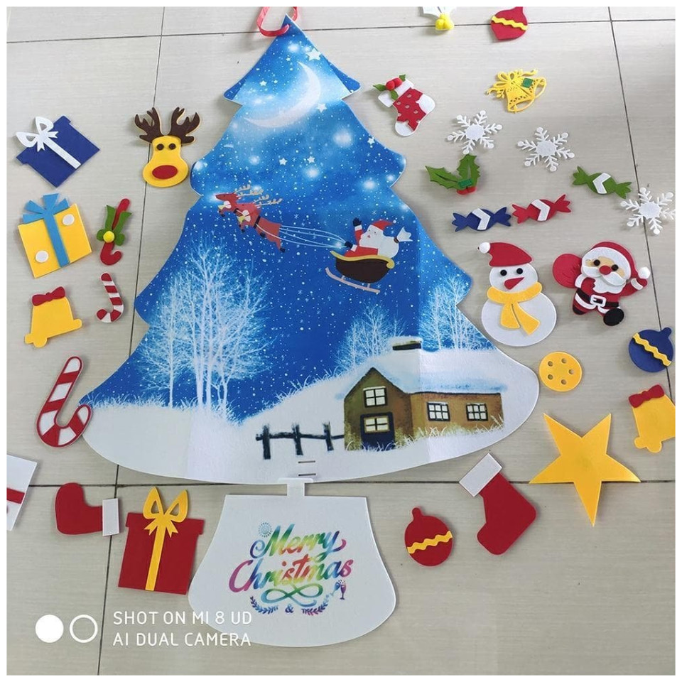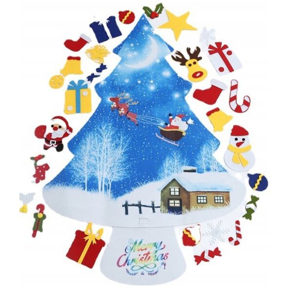 Filcowa choinka dla dzieci. Doskonała zabawka rozwijająca kreatywność najmłodszych. Wyposażona w 30 demontowalnych ozdób, które można przypinać i odpinać w dowolnych miejscach choinki. Wykonana z lekkiego i bezpiecznego materiału (filcu). Specjalna zawieszka umożliwia zawieszenie jej na ścianie.Cechy i specyfikacja produktu:Filcowa choinka dla dzieci.