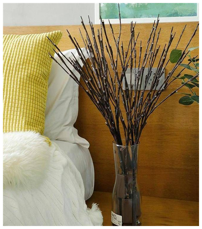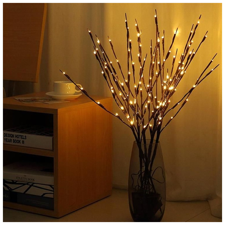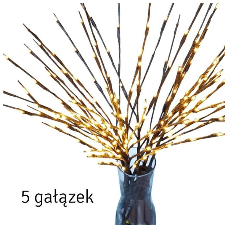 Wspaniały element dekoracyjny - komplet 5 podświetlanych gałązek wierzbowych. Każda z gałązek o długości aż 70 cm generuje światło białe o ciepłej, kojącej barwie. Jest niezależna od źródeł stałej energii elektrycznej, a do jej zasilenia wystarczą 2 standardowe baterie AA 1,5V. To doskonały pomysł na ozdobę pomieszczeń w okresie świątecznym.