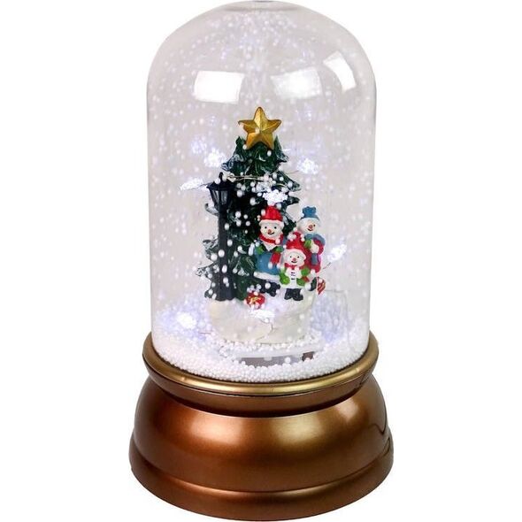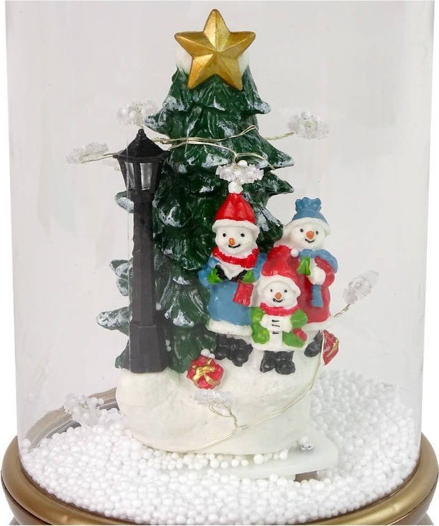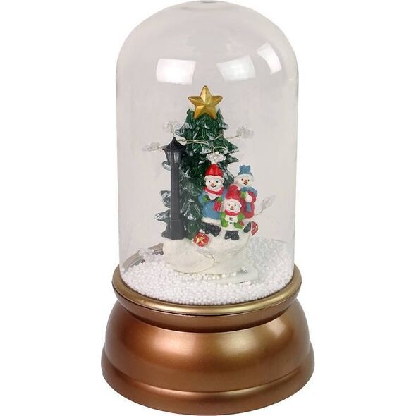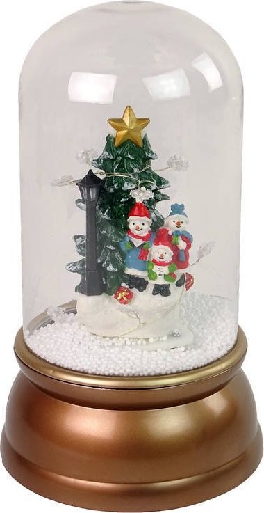 Χριστουγεννιάτικο Γυάλινο Στολίδι Χιονάνθρωπος Διακόσμηση Χιονάνθρωποι Χρυσό Χριστουγεννιάτικο ΔέντροΈνα όμορφο χριστουγεννιάτικο στολίδι που θα διακοσμήσει το σπίτι σας για τις επερχόμενες γιορτές. Θα φέρει μια ζεστή και οικογενειακή ατμόσφαιρα στο σπίτι σας, κάνοντάς το ζεστό και προσθέτοντας χριστουγεννιάτικο πνεύμα. Νιώστε ήδη τη χριστουγεννιάτικη ατμόσφαιρα Γυάλινη διακόσμηση από ανθεκτικό πλαστικό και γυαλί, η χριστουγεννιάτικη διακόσμηση μπορεί να χρησιμοποιηθεί κάθε χρόνο, γεγονός που την καθιστά μια πολύ οικονομική επιλογή και αγορά για χρόνια. Μέσα στη γυάλινη διακόσμηση υπάρχει μια χαρούμενη οικογένεια χιονάνθρωπους που τραγουδούν όμορφα κάλαντα δίπλα στο χριστουγεννιάτικο δέντρο και τεχνητό χιόνι βγαίνει από το δέντρο. Μπορείτε να μετακομίσετε σε έναν κόσμο γεμάτο χιόνι και χριστουγεννιάτικα σύμβολα. Η αντλία στο εσωτερικό μεταφέρει το χιόνι από τη βάση και το ψεκάζει από πάνω, δίνοντας την εντύπωση ότι πέφτει χιόνι, έχει λειτουργία ήχου και φωτός. Το λευκό φως τα βράδια του χειμώνα θα προσθέσει ατμόσφαιρα και θα αντικαταστήσει τον χαμηλό φωτισμό στο δωμάτιο. Οι ενσωματωμένες δύο λειτουργίες σας δίνουν την επιλογή εάν η διακόσμηση ανάβει με τα χριστουγεννιάτικα τραγούδια και τα φώτα ή χωρίς τη μελωδία, μόνο με το χιόνι και το φως που πέφτει. Μπορείτε να το αλλάξετε πατώντας το κουμπί ενεργοποίησης/απενεργοποίησης δεύτερη φορά. Το σετ περιλαμβάνει: - Χριστουγεννιάτικη διακόσμηση - τροφοδοτικό Διαστάσεις γυάλινης διακόσμησης: διάμετρος 18 cm, ύψος 32 cm Διαστάσεις συσκευασίας: 36 cm x 22 cm x 22 cm Για παιδιά άνω των 3 ετών. Ένα παιχνίδι με το πρότυπο EN71 και πιστοποιητικό CE. Η διακόσμηση τροφοδοτείται από τρεις μπαταρίες AA 1,5 V ή ένα τροφοδοτικό. Πληροφορίες προϊόντος