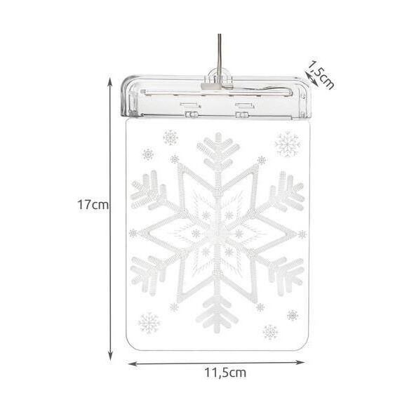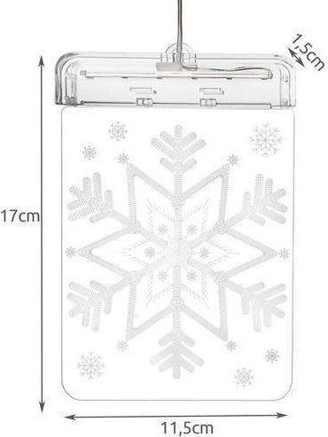 ΠΡΟΔΙΑΓΡΑΦΕΣ - ανοιχτό χρώμα: ζεστό λευκό; μοτίβο στο βιτρό: νιφάδα χιονιού. αριθμός φώτων στη λωρίδα LED: 6; μπαταρίες τροφοδοτικού: 3 x AAA (δεν περιλαμβάνονται) διαστάσεις: 17 x 11,5 x 1,5 cm; Μήκος καλωδίου: 19 cm; διαστάσεις συσκευασίας: 18 x 12,5 x 4,5 cm; βάρος: 108 g; Βάρος συσκευασίας: 121 γρ.
