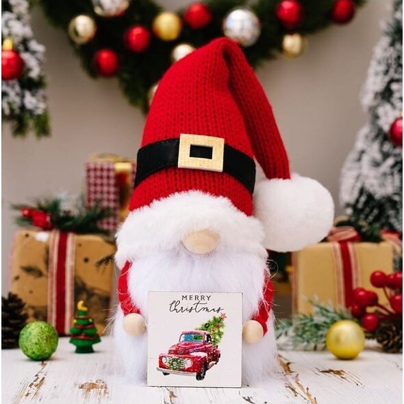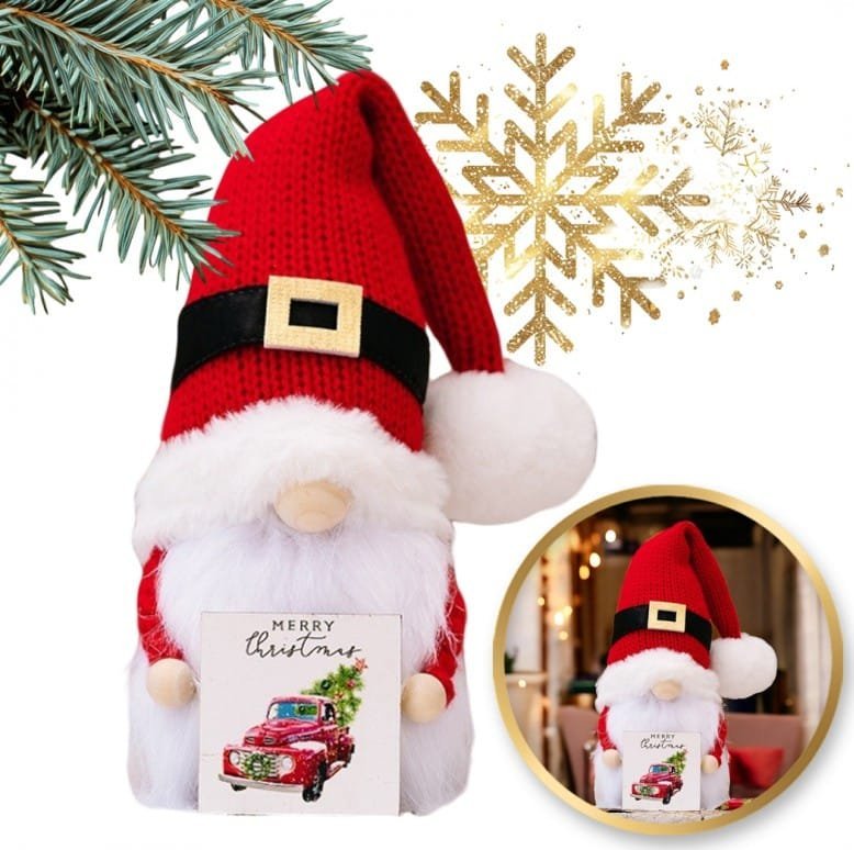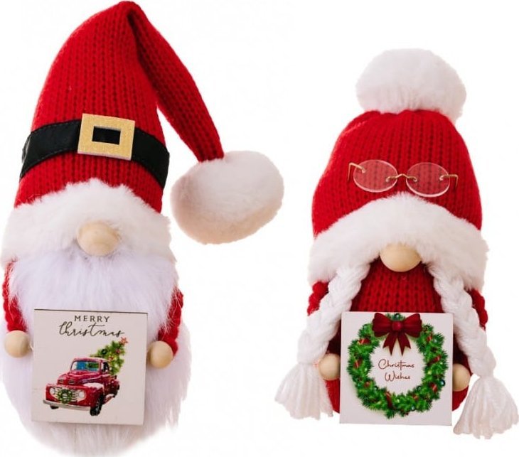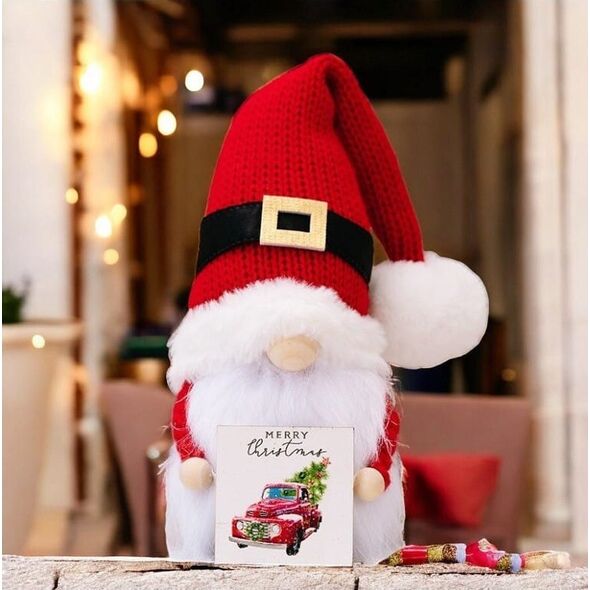Στολισμένο ξωτικό Krasnal Skrzat με κόκκινη κάρτα Χριστούγεννα 26cm KSN166